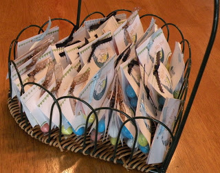 A Basket of Favors- the cutest handmade packages of Robin’s Eggs, stamped and adorned with ribbon, shaped like diapers!