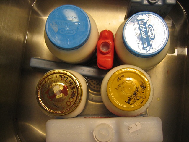 • Run jars and lids through the dishwasher to sterilize. Allow them to dry very thoroughly, then cap and store them.
