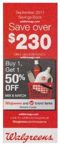 There is a new September Coupon Booklet full of Instant Value Coupons now available at Walgreens! You should be able to find them in front of the store right by the weekly ads. The book (pictured above) reads “Save over $230.”