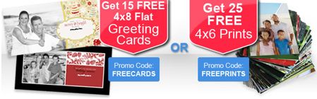 Sign up for a new account with See Here, and get 20 Free 4×8 Photo Cards. Use promo code 25cards. Shipping costs are $1.49 for 20 cards.