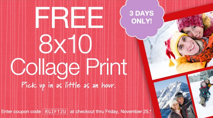 Snag a free 8×10 Photo Collage Print from Walgreens with coupon code RGIFT2U. You can get it shipped for free if you choose the in-store pickup option. Offer is limit 1 per person, and available through November 25.