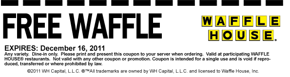 - Waffle House Coupon – FREE Waffle (exp: 12/16/2011)