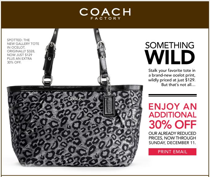 - Coach Outlet Coupon – 30% Off Entire Purchase (exp: 12/11/2011)