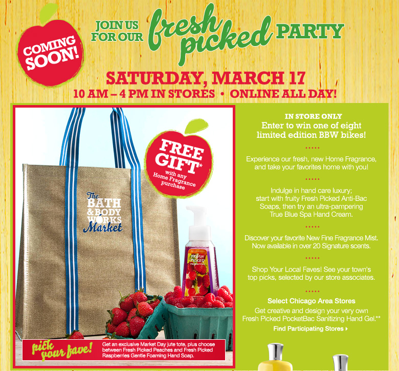 - Bath & Body Works Coupon Free Gift with Any Home Fragrance Purchase on 3/17 from 10am – 4pm
