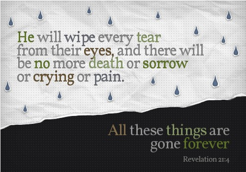 When there will be no crying, no pain or no death,that will be the end of the world.