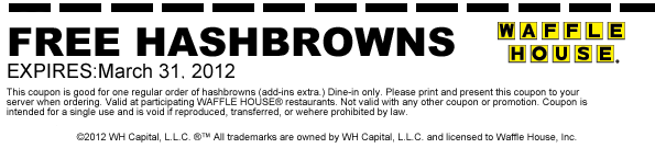 - Waffle House Coupon FREE Hash Browns (exp: 3/31/2012)