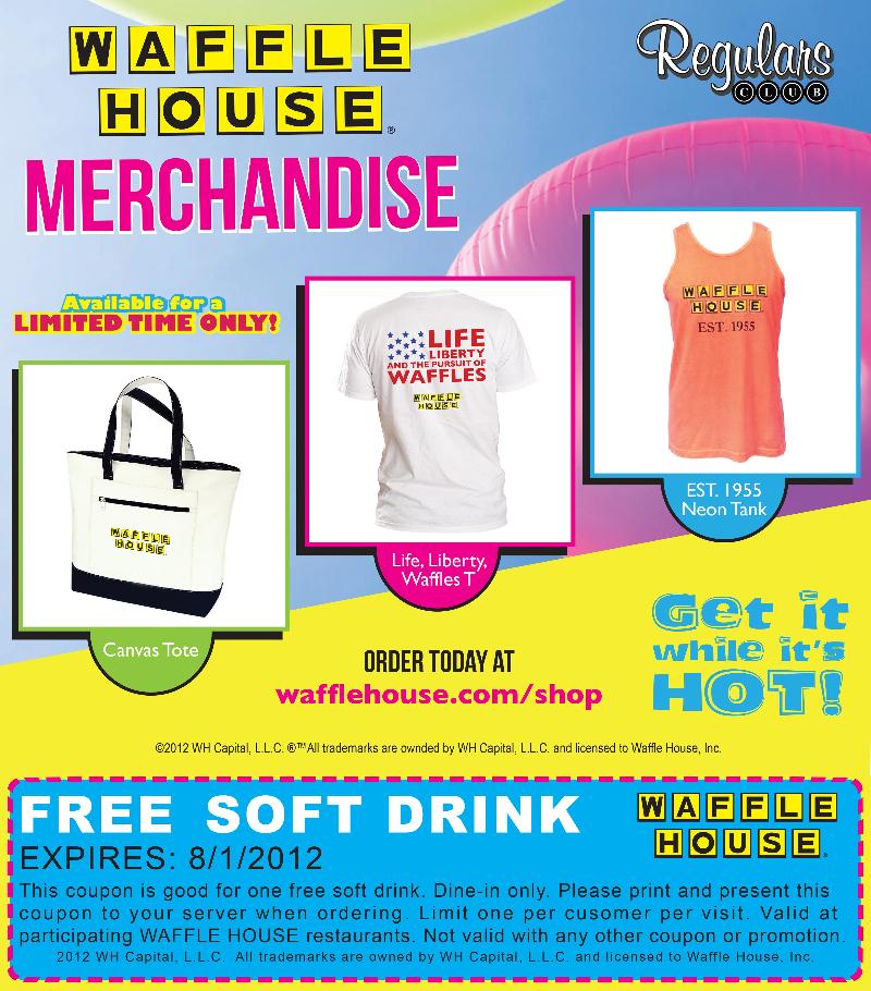 - Waffle House Coupon – FREE Soft Drink (exp: 8/1/2012)